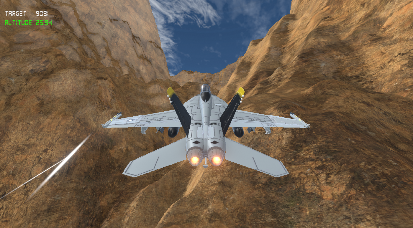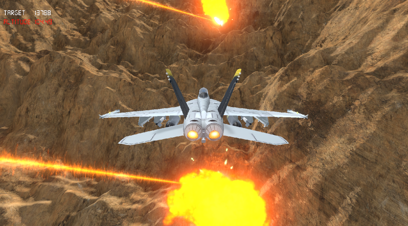 Fly a jet through a narrow canyon while avoiding alien lasers. Inspired by a scene from the movie "Independence Day" ;)